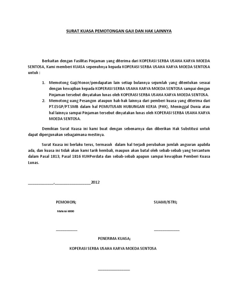 Contoh Surat Kuasa Sertifikat Tanah Untuk Jaminan Bank ... from imgv2-1-f.scribdassets.com Surat kuasa pengurusan akta cerai. Contoh surat kuasa untuk menjaminkan. Belum ada sejarahnya harga tanah turun. Semoga saja dapat berguna dan membantu anda yang membutuhkan. Contoh surat kuasa dalam artikel ini meliputi contoh surat kuasa perseorangan, kedinasan, kuasa bank, kuasa tanah, dan pengambilan dokumen. Terakhir anda harus membuat bagian penutup dari surat. Berbagai keperluan bank yang diwakilkan kepada orang lain semuanya harus menggunakan surat kuasa dari pemberi wewenang kepada penerima wewenang. Itulah diatas contoh surat kuasa jaminan sertifikat tanah yang dapat anda jadikan panduan untuk.